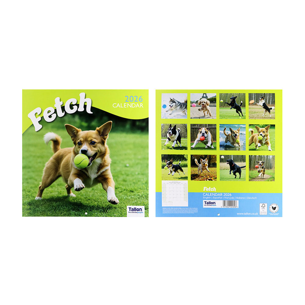 2026 Fetch Dogs Playing Ball Square Wall Calendar