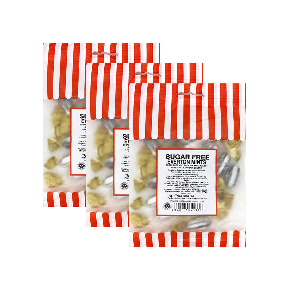 An instantly recognisable mint with a chewy centre encased in a black and white mint shell, Bumper Bag Everton Mints are a true classic. Suitable for Vegetarians.
