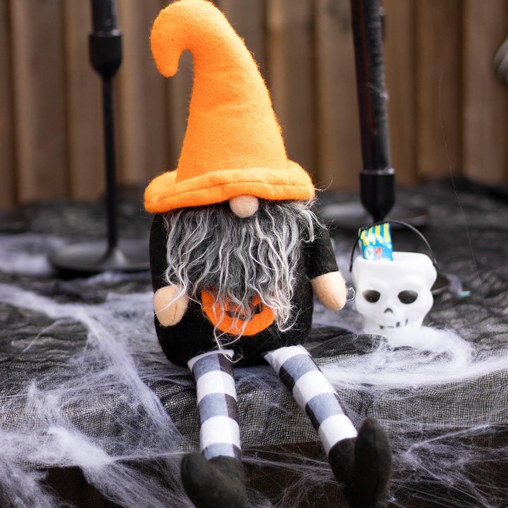 Perfect for placing on shelves, window sills, mantels, or as a centrepiece for Halloween gatherings, this gonk makes a fun addition to any spooky season setup.