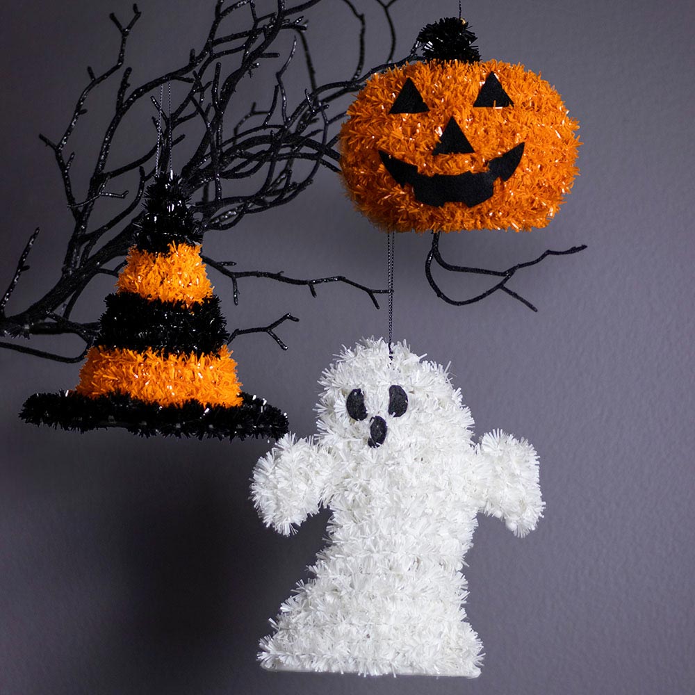 These Halloween Tinsel Table Decorations are ideal for Halloween parties and feature a spooky decoration or character that is built onto a plastic frame. Features: