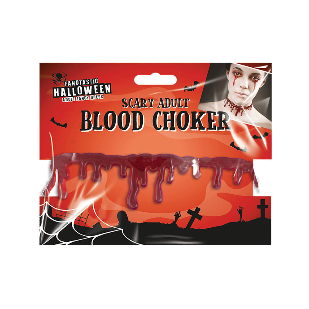 This Halloween Bloody Neck Choker is constructed of durable rubber and is finished in a deep blood red colour. The choker is 44cm in length and is simply worn around the next to make a creepy Halloween accessory. Ideal for Halloween parties and trick or treat fun. Feature: