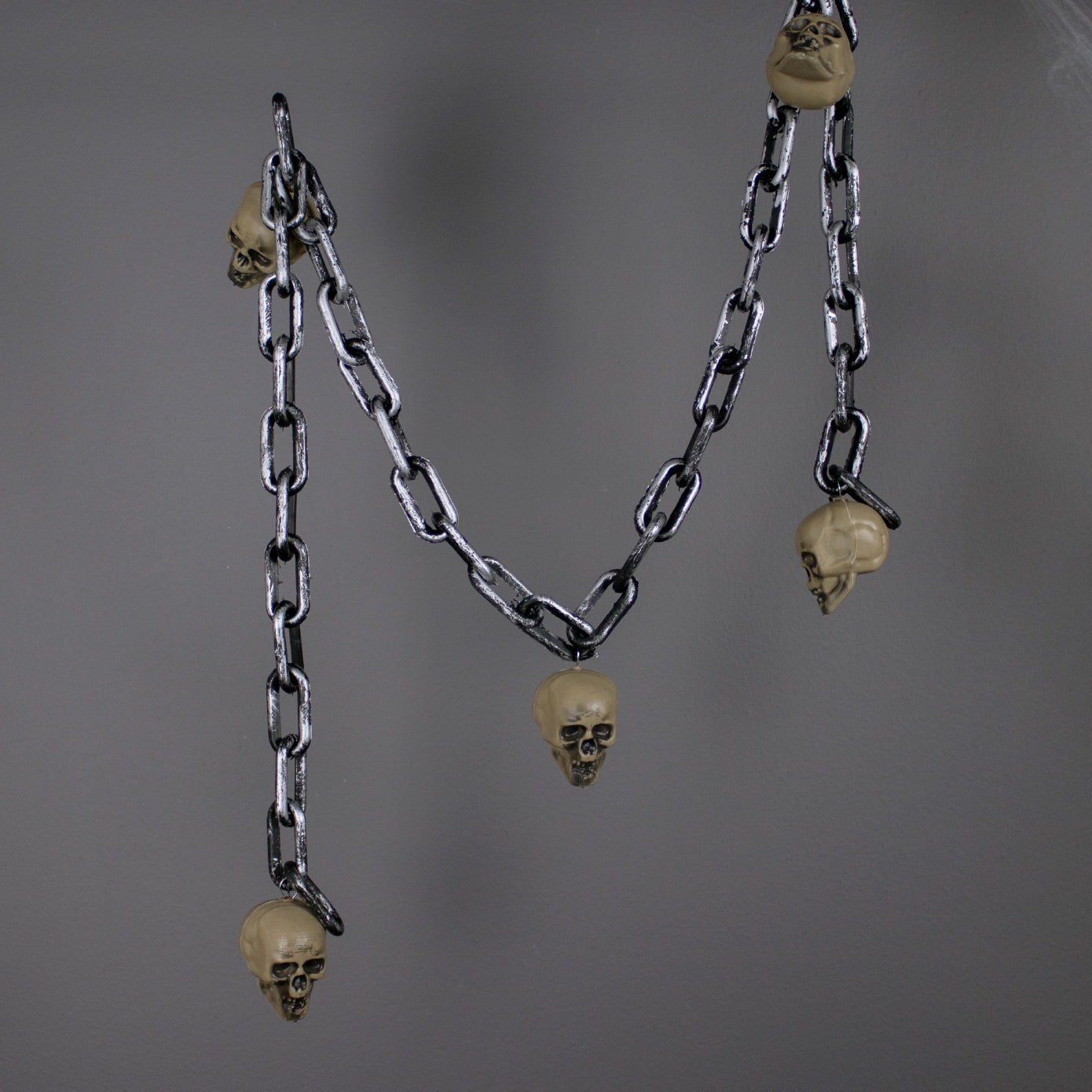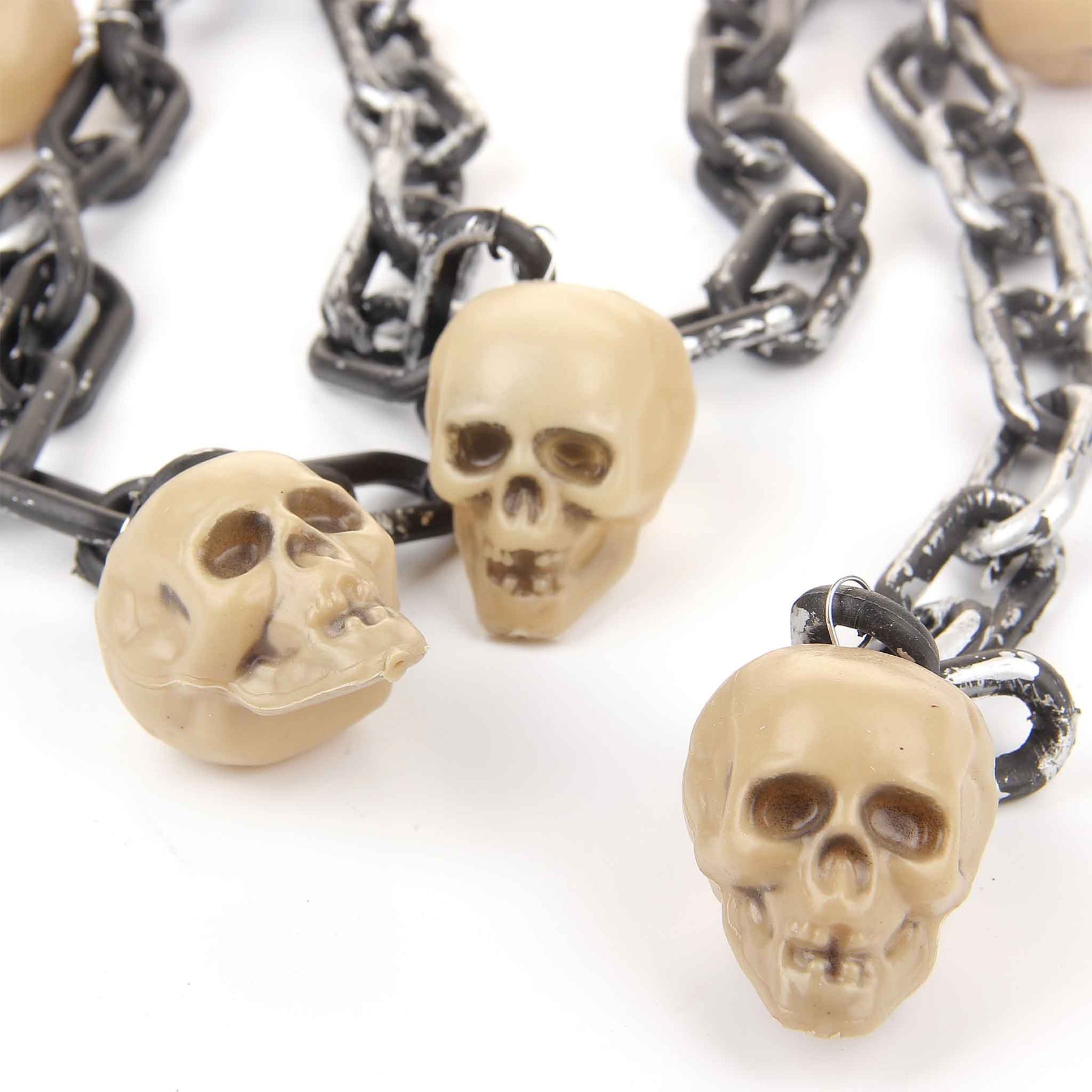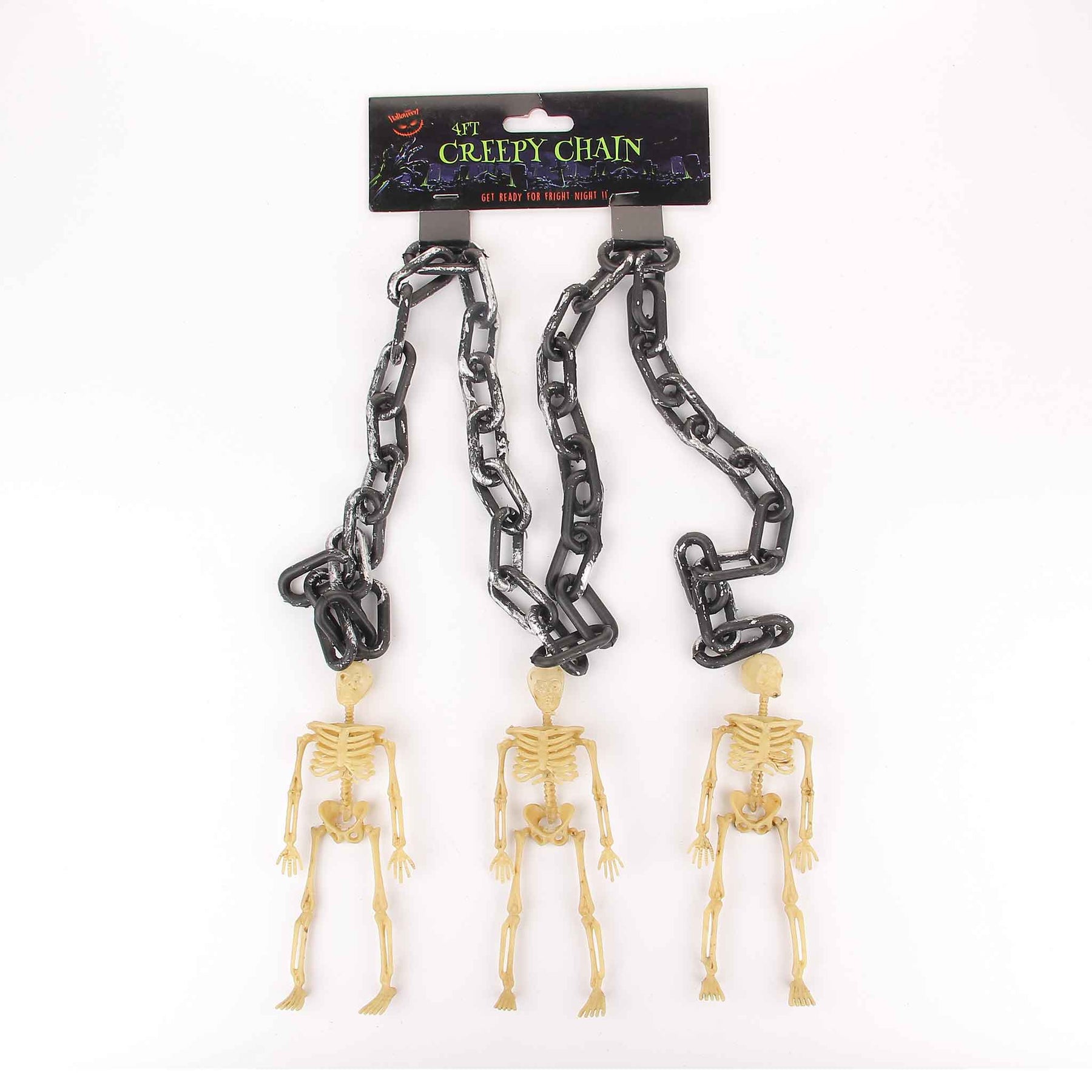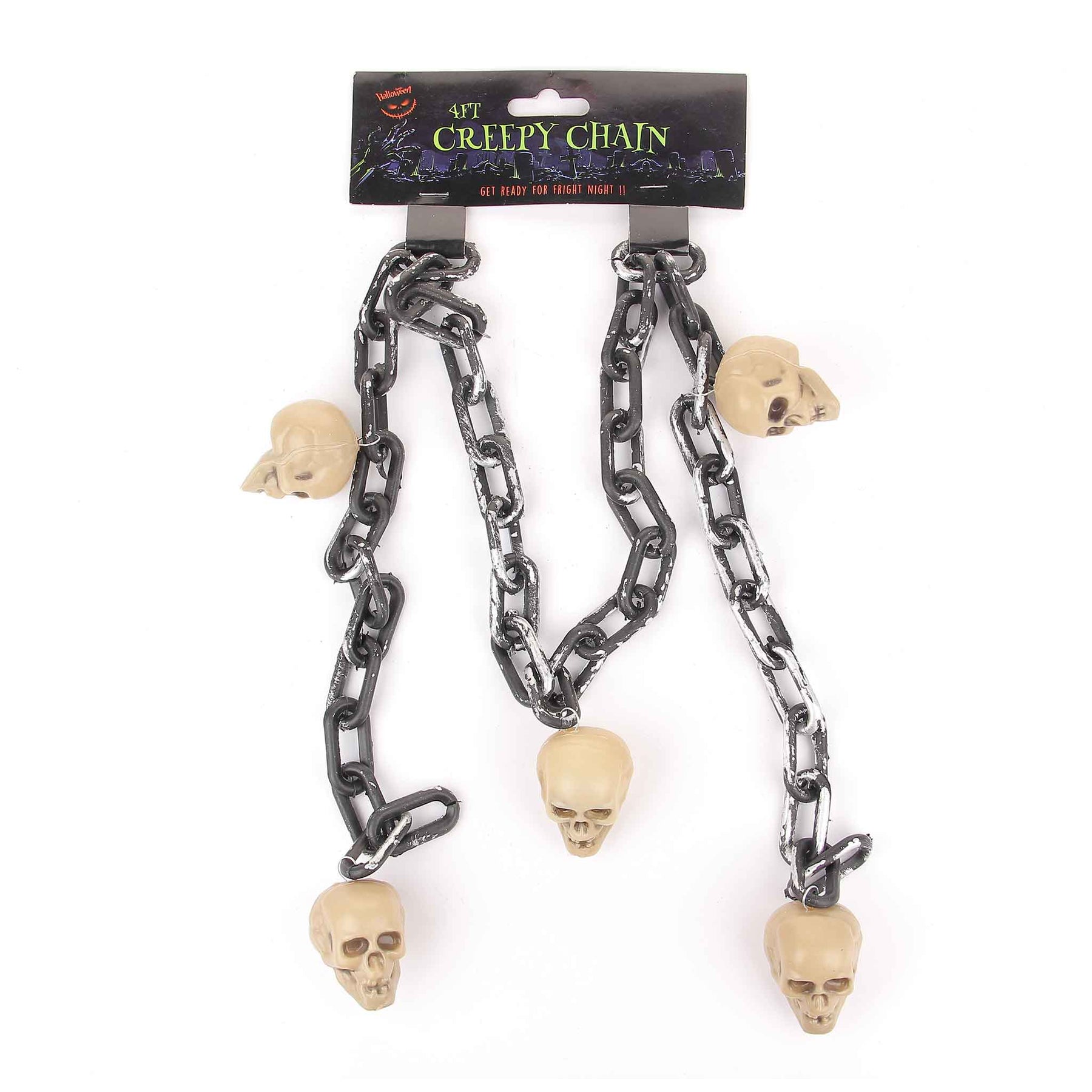 It's time to get creepy with this super creepy chain Halloween decoration. Featuring a black and silver chain with bloodshot eyeballs or skull or Skeleton attached this decoration can be hung up or displayed around the home for a spook-tastic finishing touch to your Halloween decor! Features: