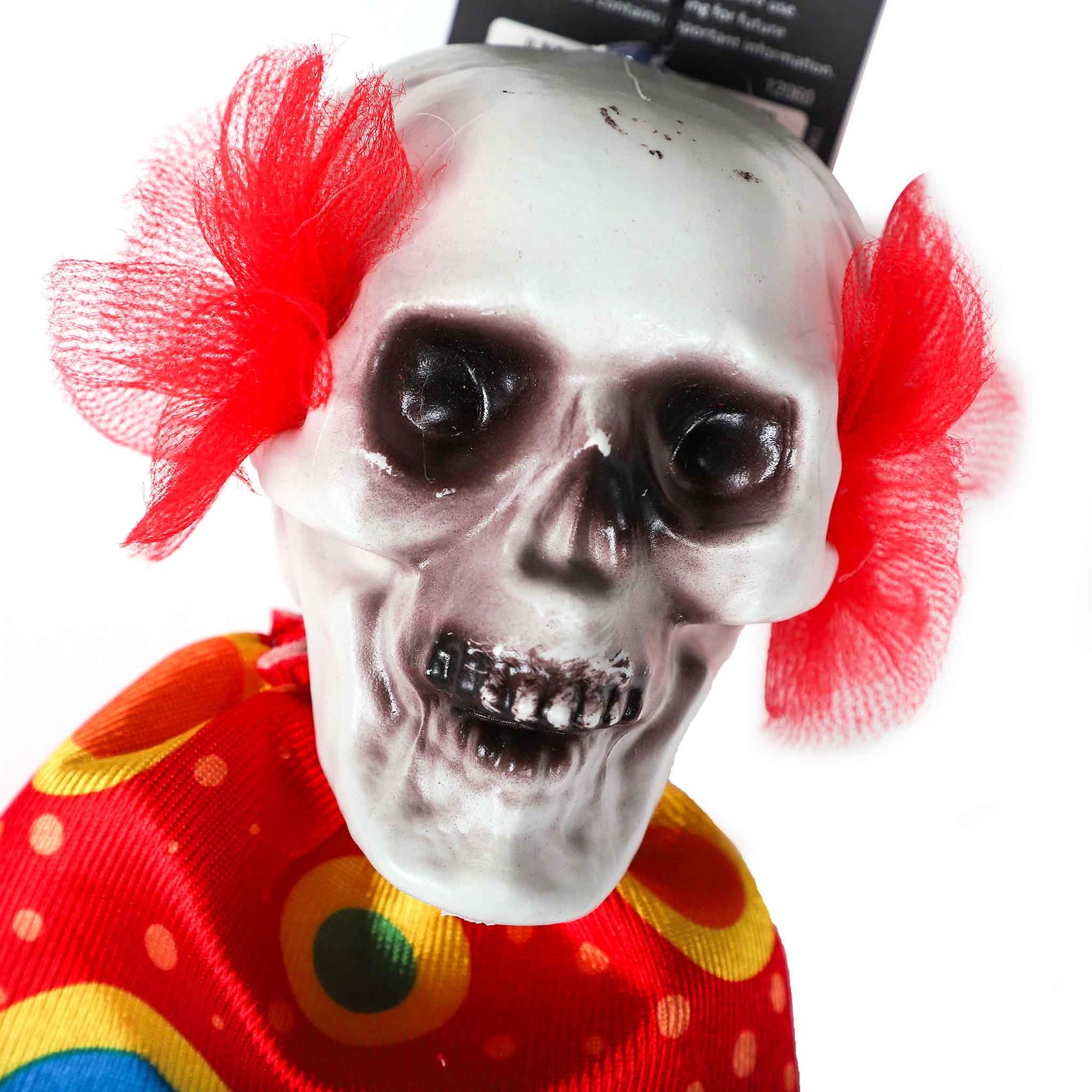 Be the spookiest house in town with this hanging clown decoration! Designed with a super creepy skeleton face, bright clown cape and spooky black and white fabric dangling underneath. Complete with a hanging feature, you can enjoy hanging this Clown decoration from doorways, stairs, ceilings and more! Features: