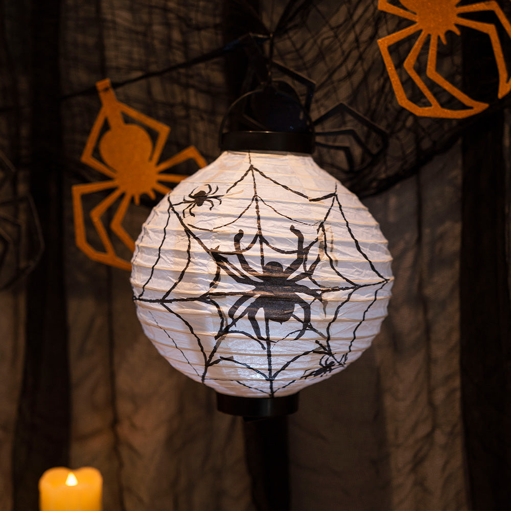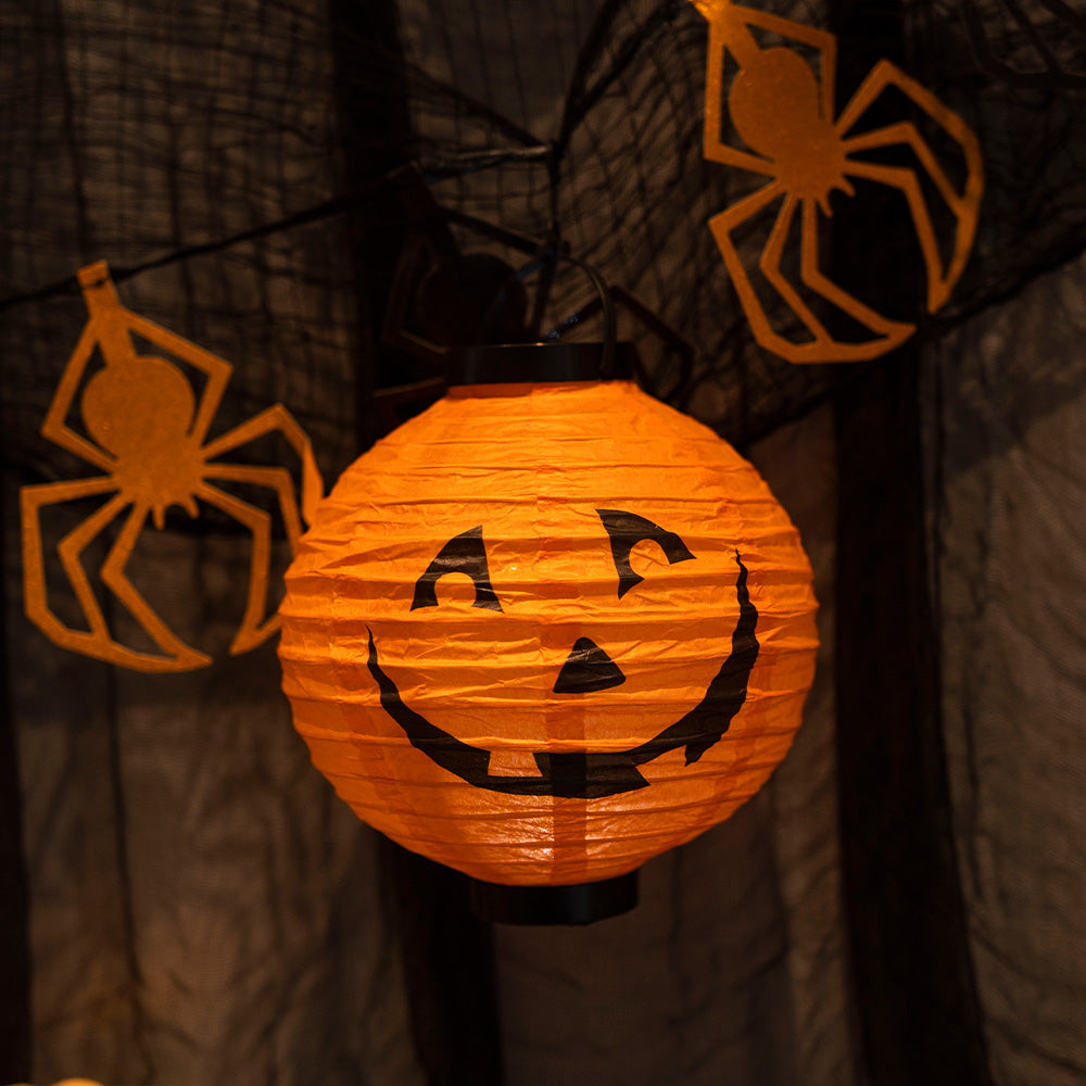 Set an eerie scene in your haunted house with this stylish Halloween Indoor Lantern. Featuring a round sphere shape, this Halloween decoration comes with spiders decorated all over or a creepy orange pumpkin smile. The perfect decoration for your fun Halloween parties. Features: