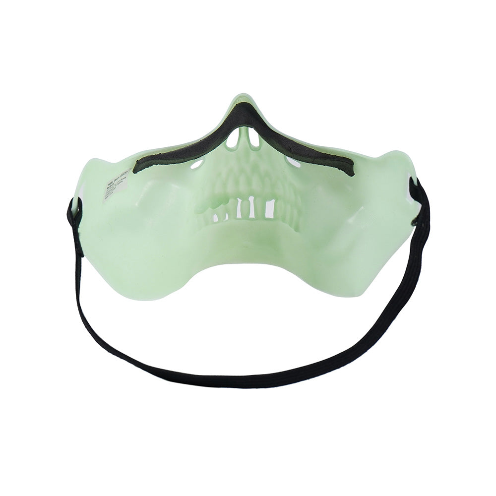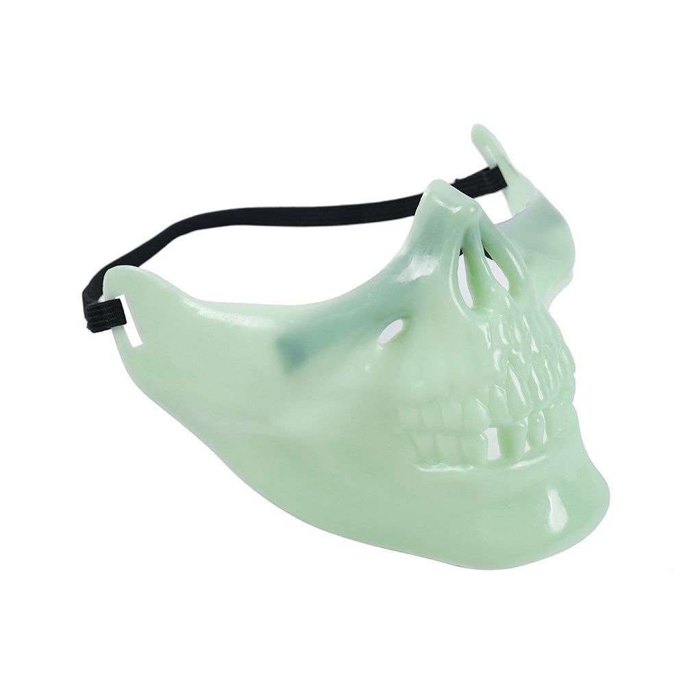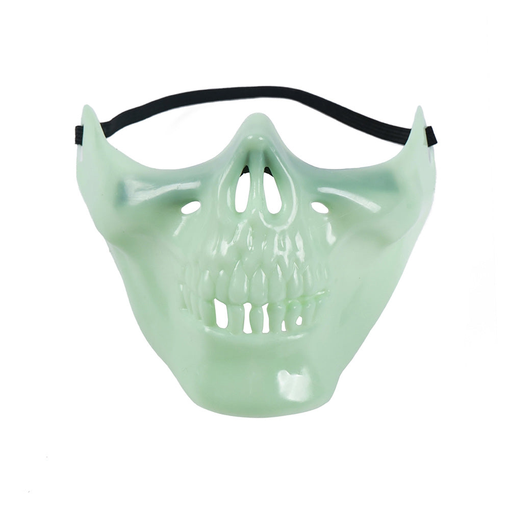 This is an all Glow in the dark skull, moulded plastic half skull mask with elastic fastening at the back.