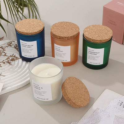 Aroma Scented Frosted Glass Jar Candle with Wooden Lid 7Oz