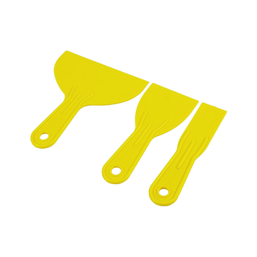 The 3 Piece Plastic Putty Knife Set is a practical solution for everyday repair and decorating tasks. Designed for applying, spreading and smoothing fillers and compounds, it is suitable for use in homes, workshops and DIY projects. The plastic blades help protect delicate surfaces while still providing enough firmness for effective application and scraping. With three different sizes included, this set offers flexibility for a wide range of tasks, from detailed repairs to larger surface areas.