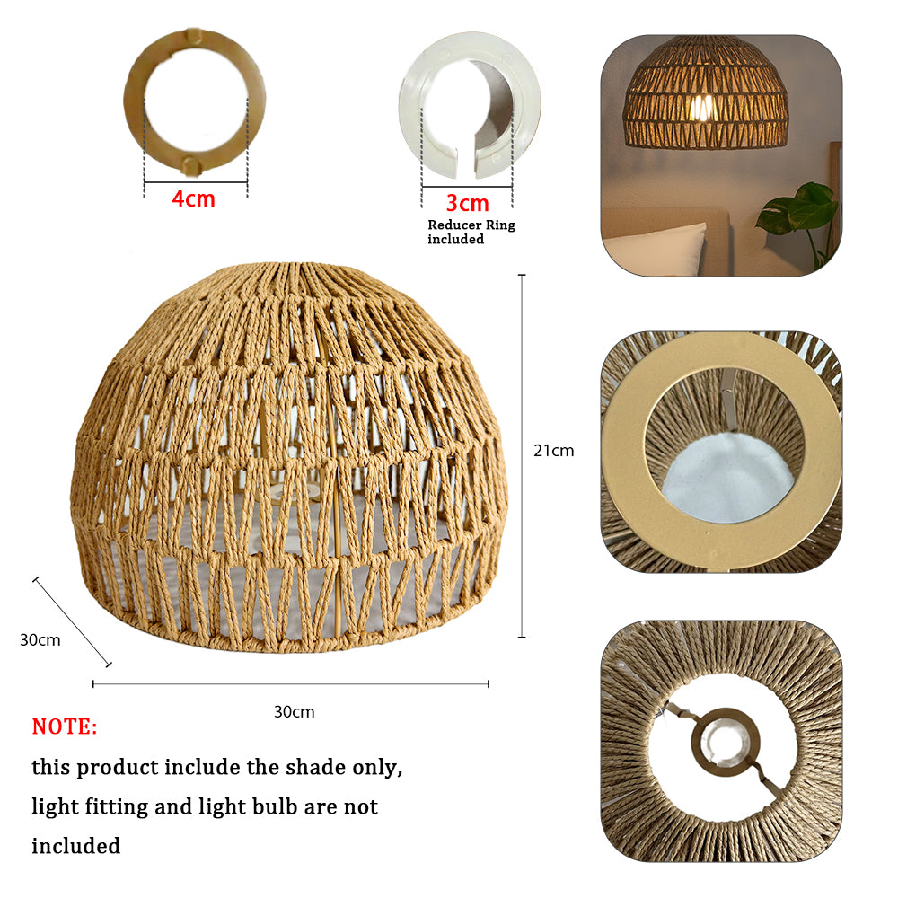 Measuring approximately 30cm in diameter and 21cm in height, it is perfectly sized for pendant lighting over dining tables, bedrooms, living rooms or reading corners. Designed to fit standard light fittings, it includes a reducer ring for easy compatibility.