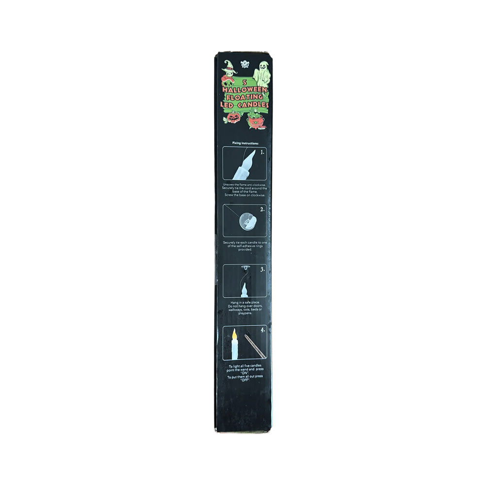 Transform your Halloween party into a mystical scene with this 5 Pack of Floating LED Candles. Designed with realistic flickering lights, these flameless candles bring an eerie yet enchanting glow to your home or event. The lightweight build makes them easy to suspend, creating the illusion of floating candles—perfect for haunted house effects or magical Halloween setups. Powered by replaceable batteries, they offer safe, long-lasting illumination without the risk of fire or messy wax. Whether used indoors for spooky decorations or as part of a party display, these LED candles add the perfect finishing touch to your Halloween celebrations.