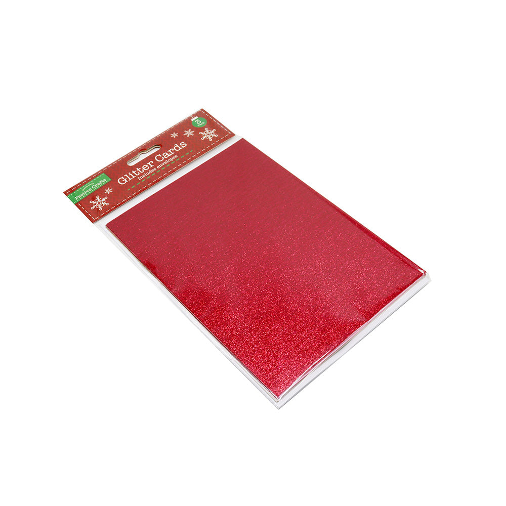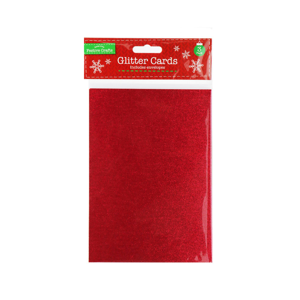 The Festive Crafts Glitter Cards and Envelopes Red 3PK offers a stylish and festive way to send greetings or create craft projects. Each card features a vibrant red glitter finish that adds sparkle and elegance, making your messages stand out during the holiday season. This set comes complete with matching envelopes, providing a ready to use solution for sending, gifting, or presenting your cards. Suitable for Christmas, holiday celebrations, or craft projects, the cards are perfect for both personal use and creative seasonal activities.