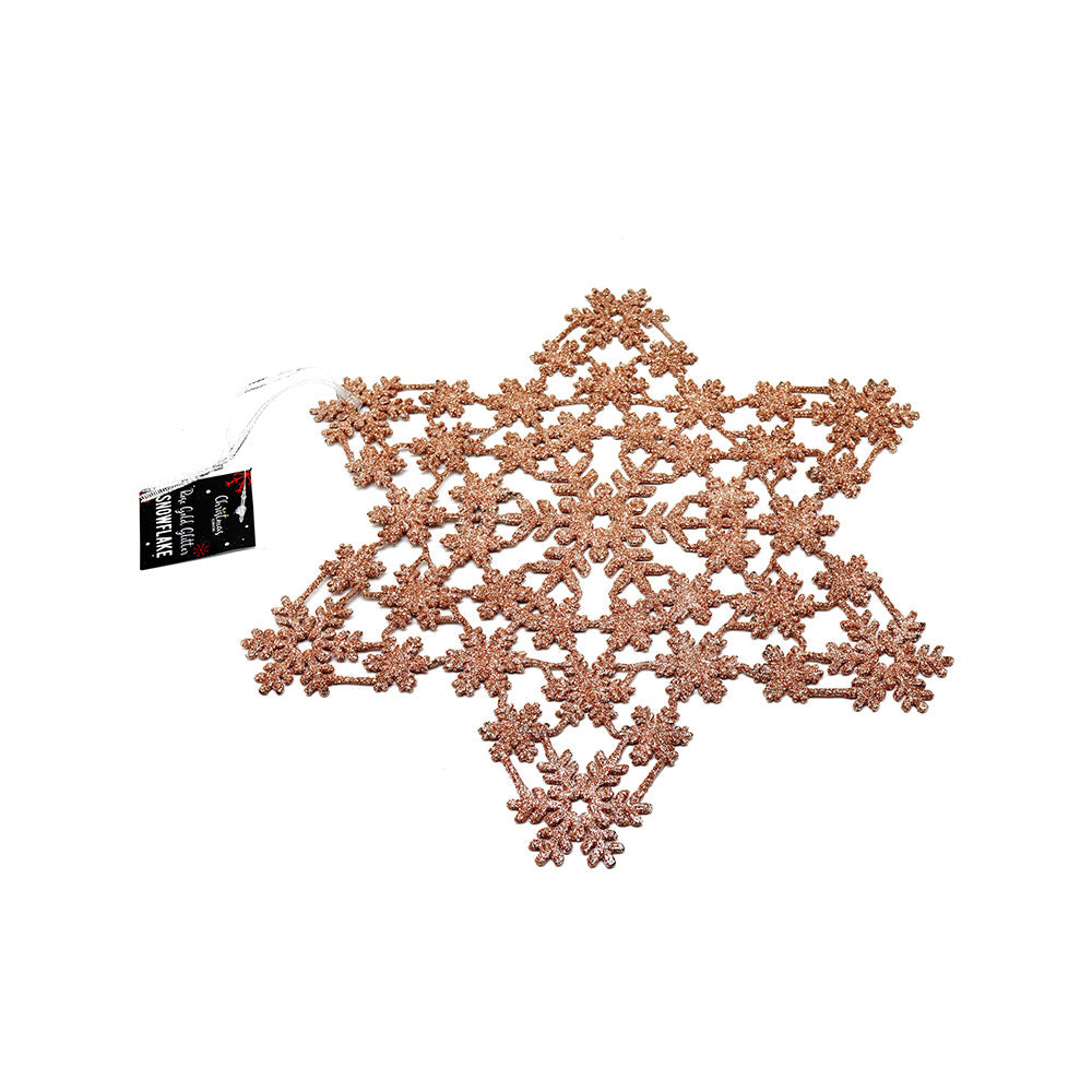The Hanging Glitter Rose Gold Snowflake 32CM is a stylish and eye catching decoration designed to enhance your festive and winter themed decor. Featuring a shimmering rose gold glitter finish, it adds warmth, sparkle, and elegance to Christmas displays. With its generous 32CM size, this snowflake creates a striking visual impact when hung on Christmas trees, windows, walls, or ceilings. Lightweight and easy to hang, it allows for flexible decorating in homes, offices, shops, or event spaces.