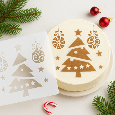 A collection of blue Christmas ornaments with various designs, including a Christmas tree, stars, and a car.