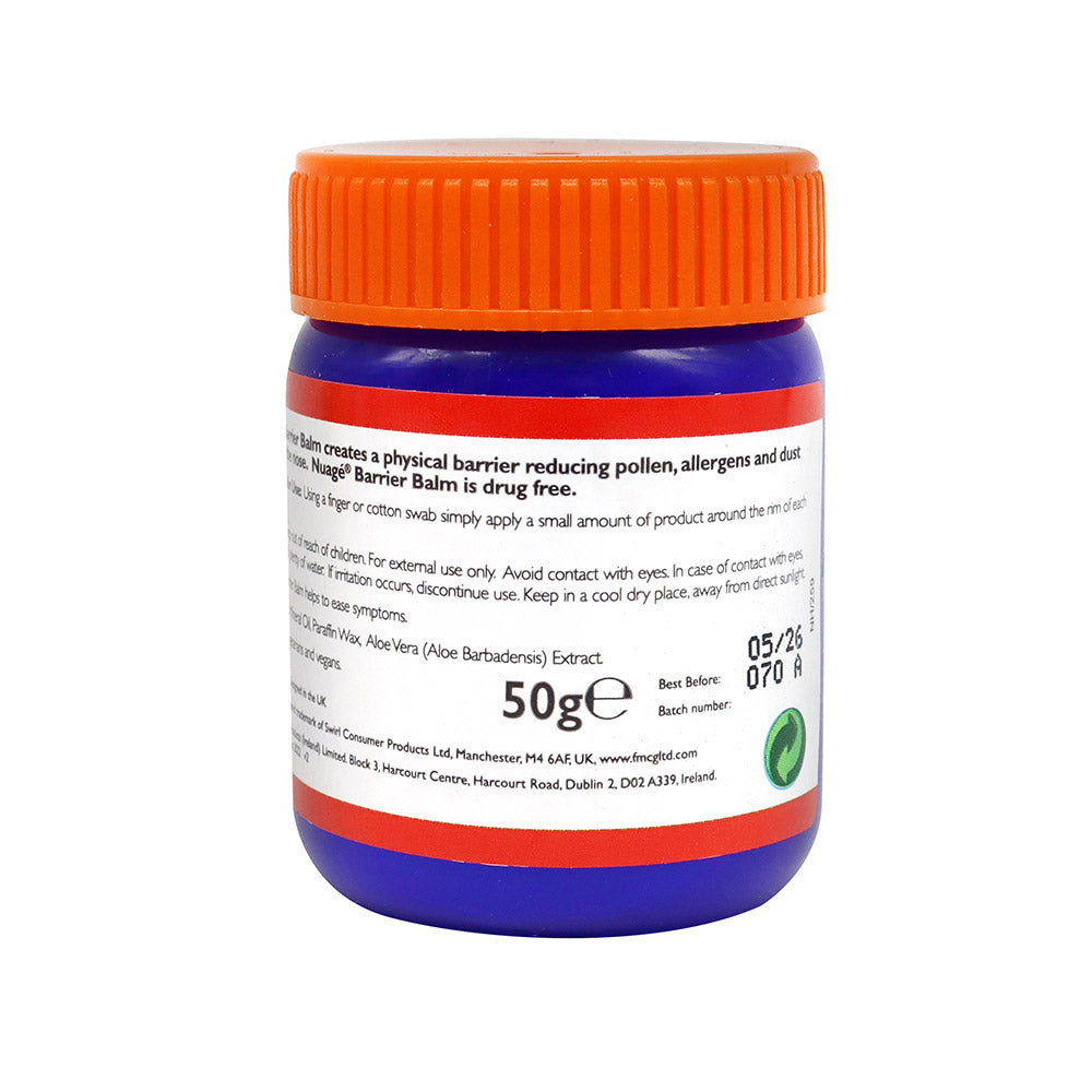 Nuage Hayfever & Allergen Barrier Balm Traps Pollen 50g is a protective balm designed to reduce the effects of pollen and environmental allergens. By forming a gentle barrier on the skin, it helps trap irritants before they can trigger discomfort. The lightweight, non-greasy formula is easy to apply and soothing for sensitive areas around the nose and face. Suitable for daily use during allergy season, this balm provides comfort and protection for those prone to hayfever or airborne allergens.