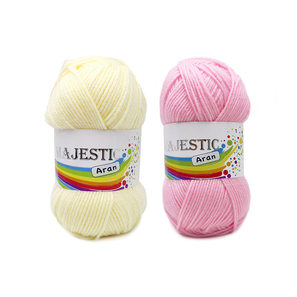 Majestic Aran 100g is a mixed fibre yarn that is mainly acrylic. It comes in 100g balls with solid and marled colours. It is aran weight and can be knitted on 5mm needles. It is a one off lot product. Features: