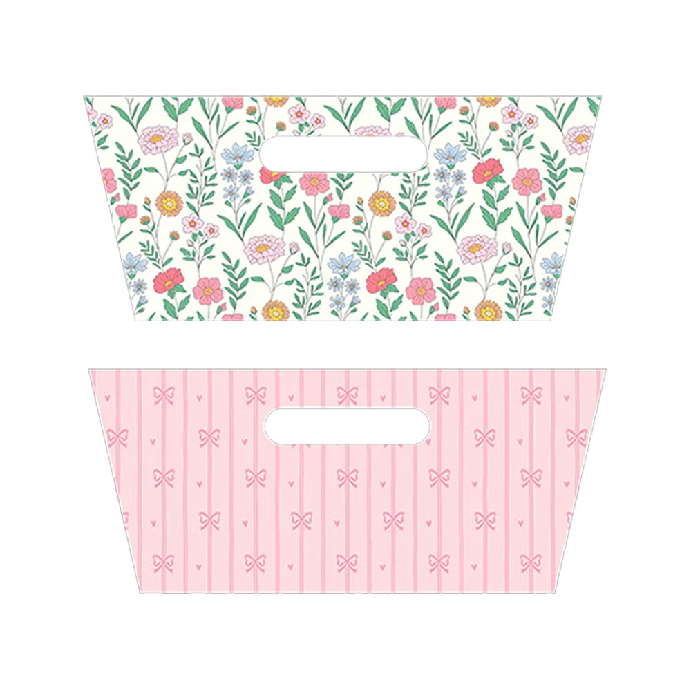The sturdy cardboard construction provides reliable support while remaining lightweight and easy to carry using the built-in handles. Finished in delicate floral and soft pink bow patterns, it adds a decorative seasonal touch and transforms any collection of gifts into an eye-catching presentation for Mother’s Day celebrations.